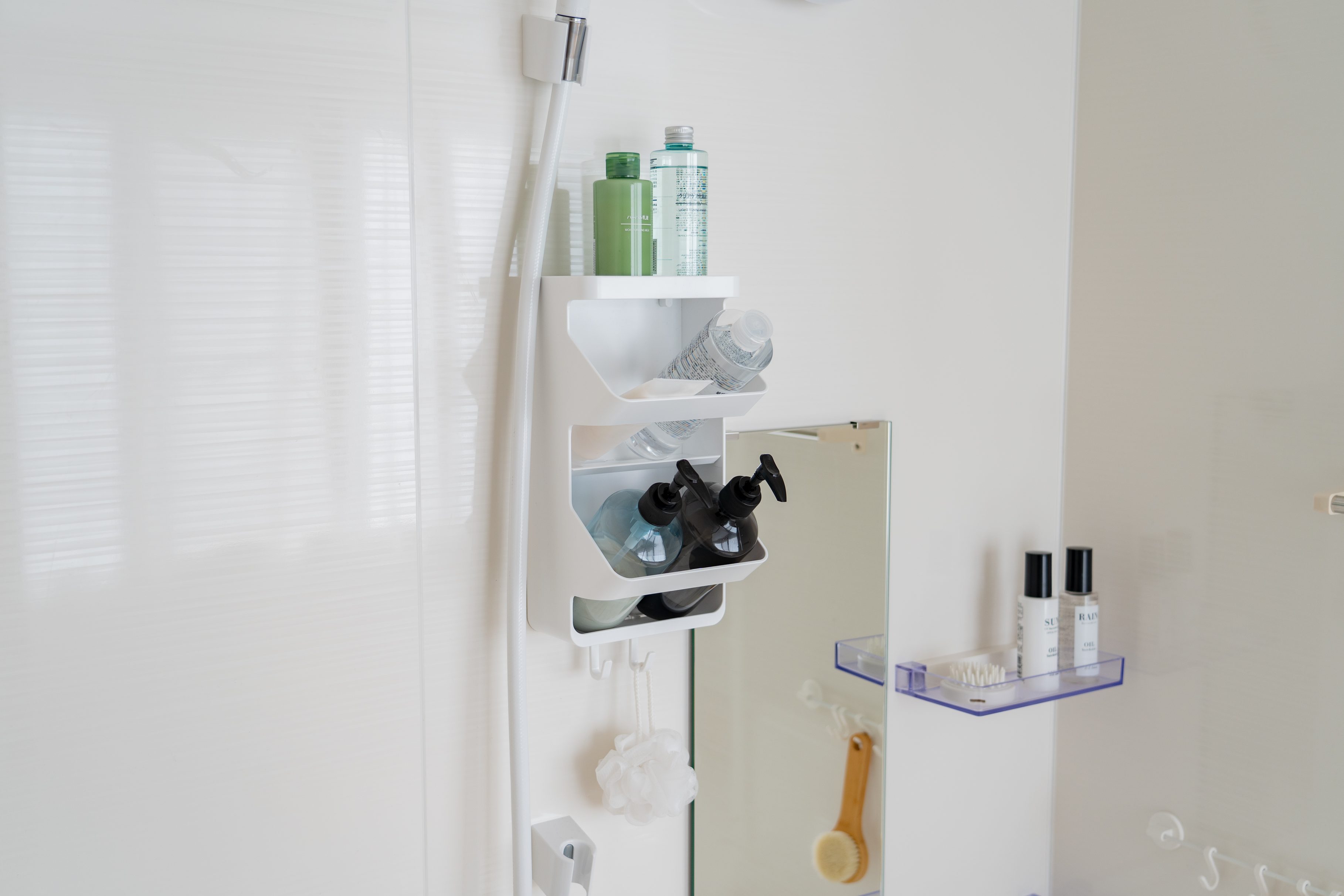 浴室の壁面を有効活用できるため、限られた空間でも収納スペースを大幅に増やせます。シャンプーやボディソープのボトルはもちろん、掃除用具や子供のおもちゃなど、散らかりがちなアイテムをまとめて収納できます。既存の棚だけでは足りない場合や、賃貸で収納を増やしたい場合に特に役立ちます。