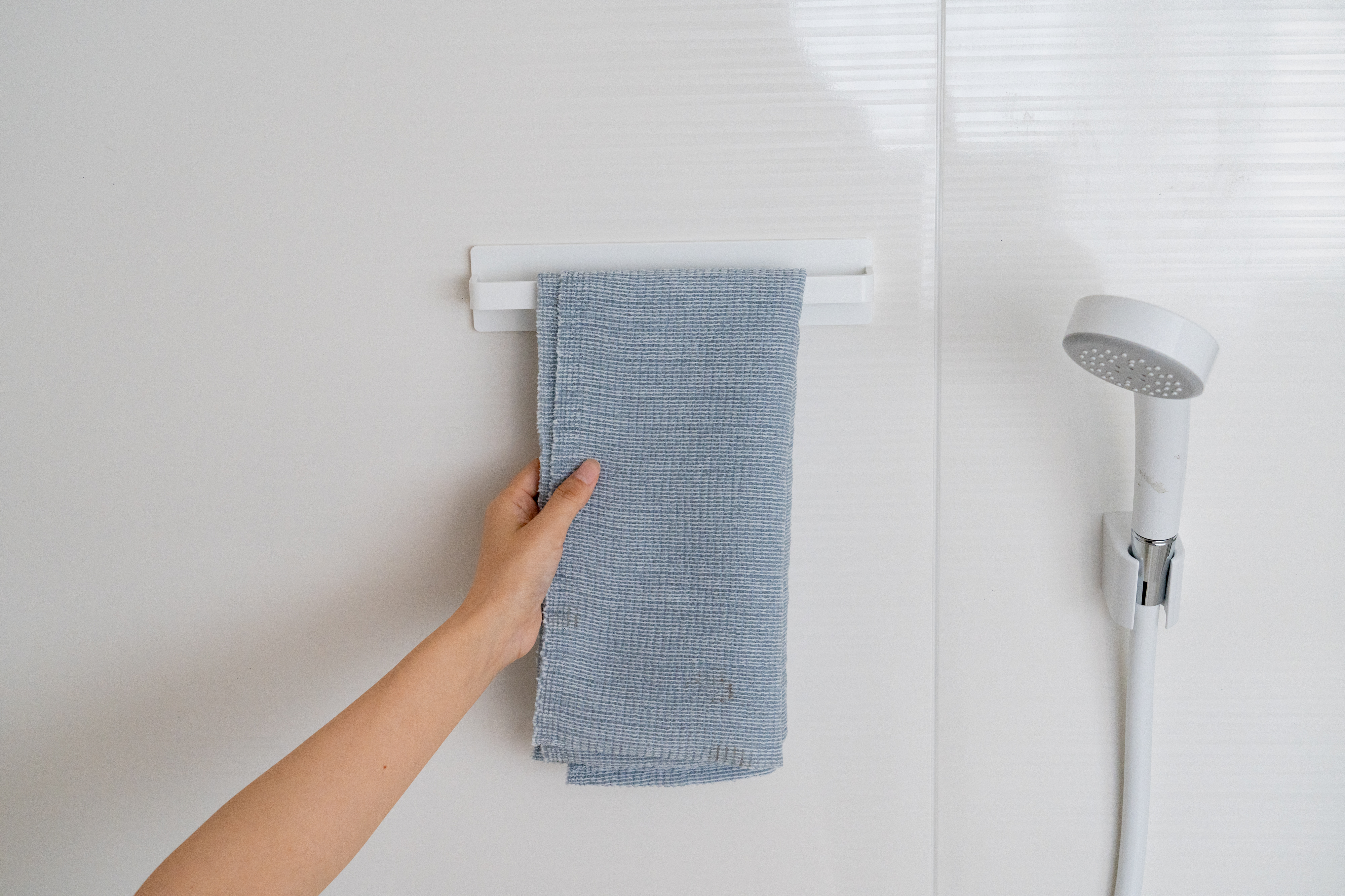 - タオル:タオル掛けが足りない場合や、ボディタオルを乾燥させたい場合は、マグネット式のタオルハンガーが役立ちます。ワイドタイプを選べば、複数のタオルをかけられます。