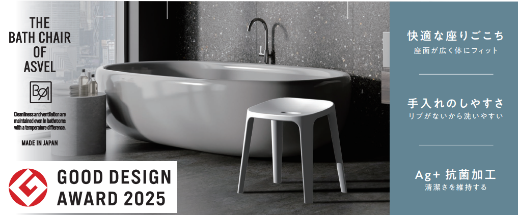 このたび、弊社製品「バスチェアEX」が『2025年度グッドデザイン賞(Gマーク)』を受賞いたしました。以下、審査委員コメントになります。