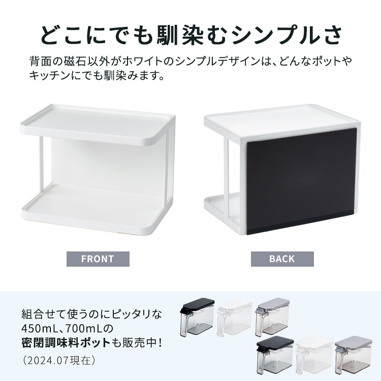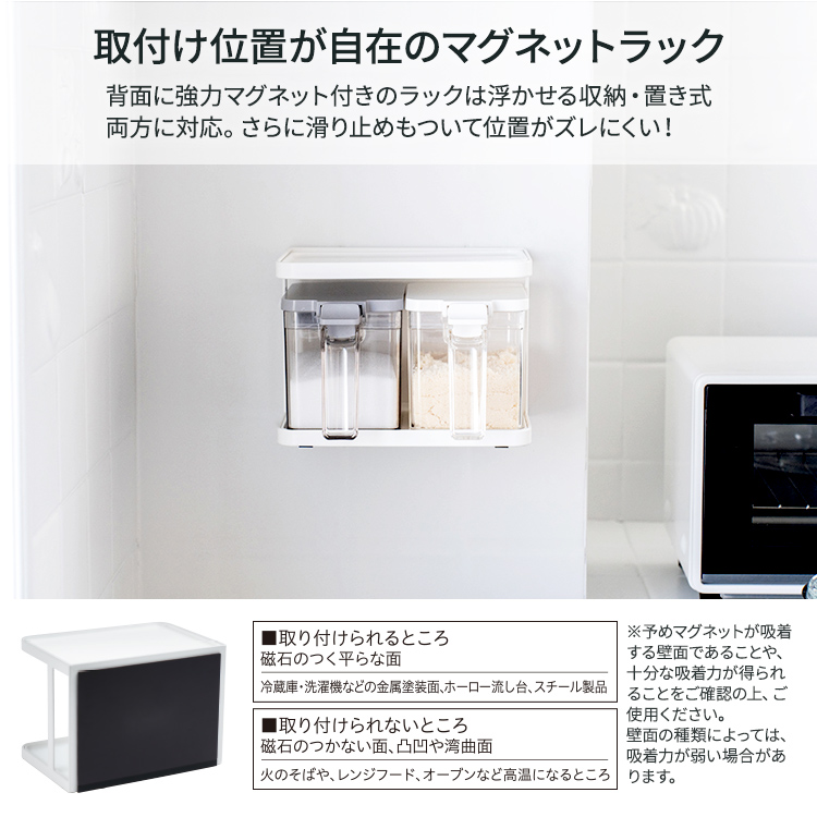 マグネットでキッチンの壁につけれる2段ラックです。キッチントップに置いても使える2WAYタイプ。
