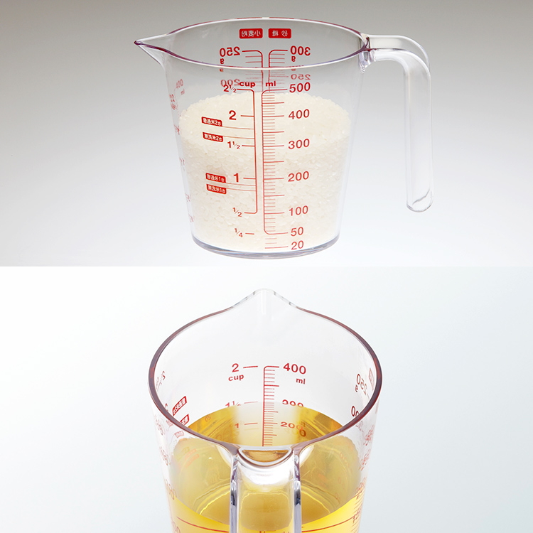 上から目盛りが見える計量カップです。500ml