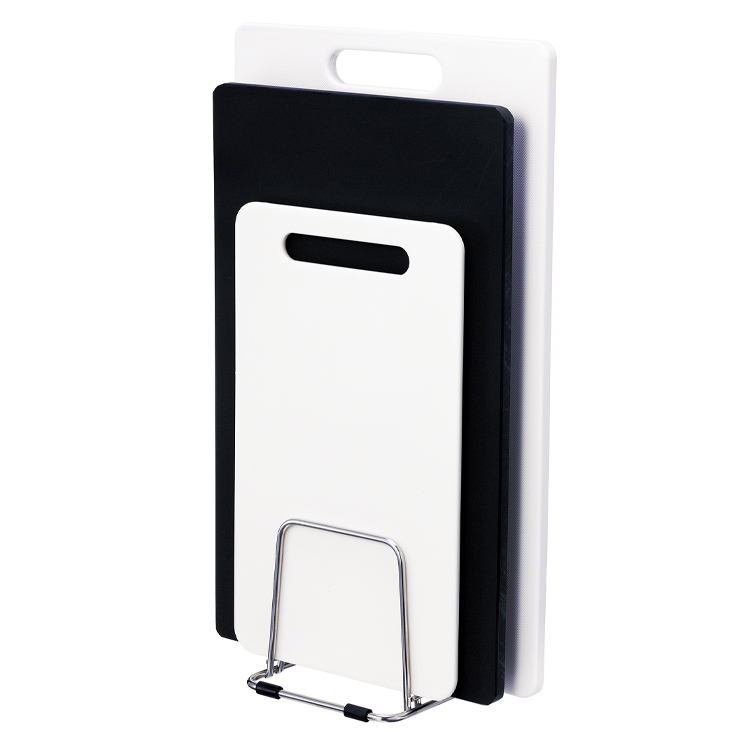 錆びないステンレス製。まな板3枚をひとまとめで収納できます。