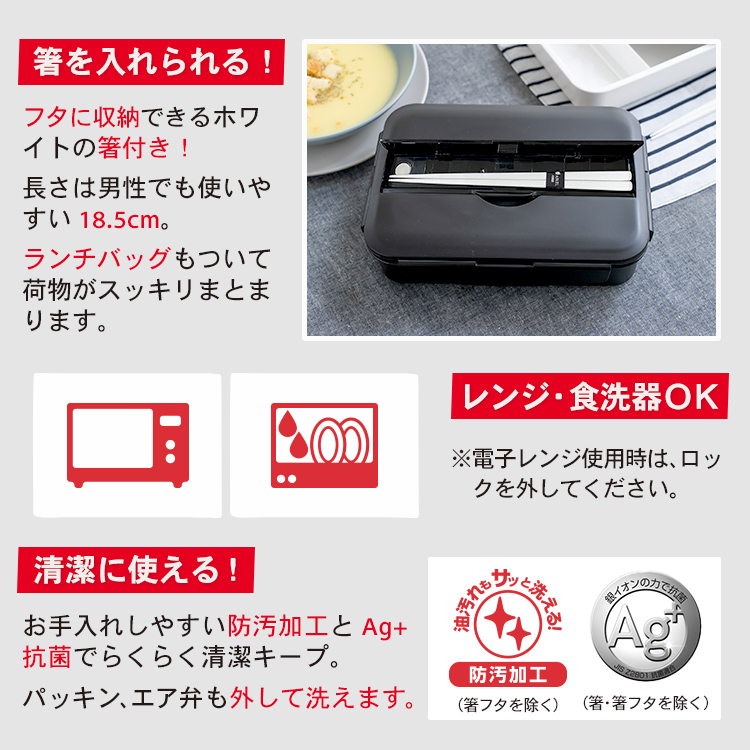食洗機、レンジ加熱対応。箸・バッグ付きのオールインワンタイプです。