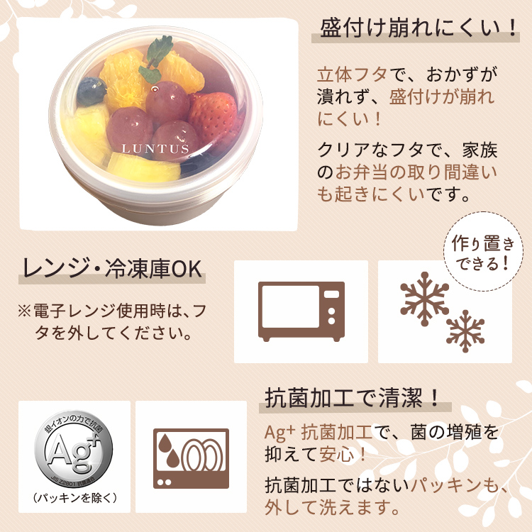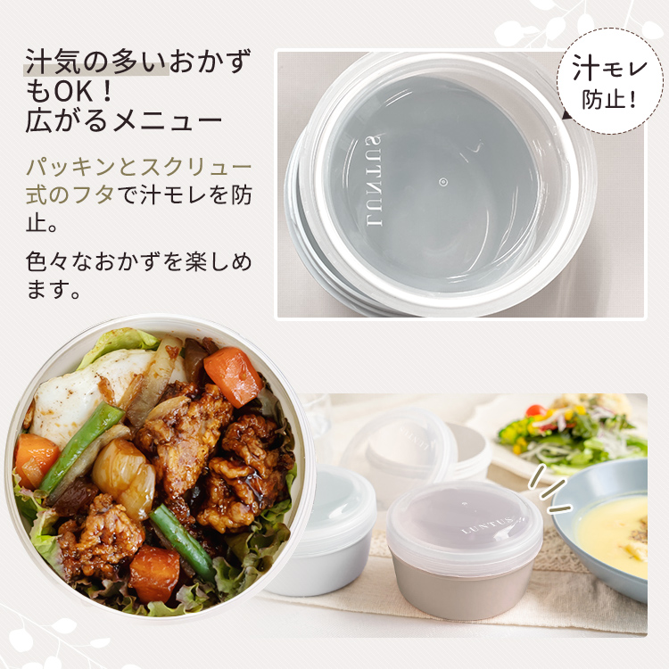 パッキン&スクリューで汁漏れを防ぐ丸型ランチボックス!