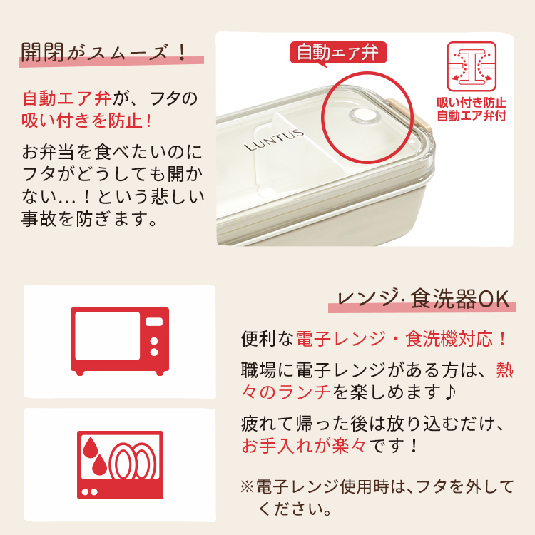 - 本体・仕切り・止め具・弁本体=PP、フタ=AS樹脂、パッキン・エア弁=シリコーンゴム