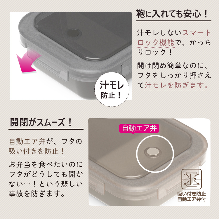 - フタ=PP/熱可塑性エラストマー、本体・仕切・弁本体=PP、弁=シリコーンゴム