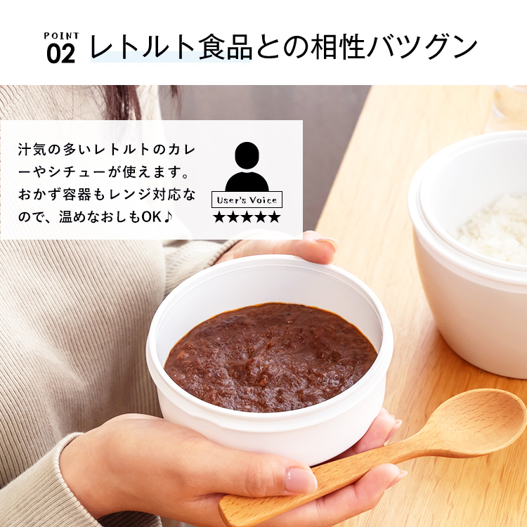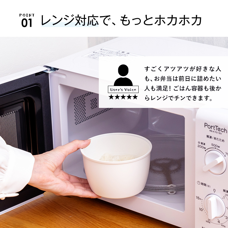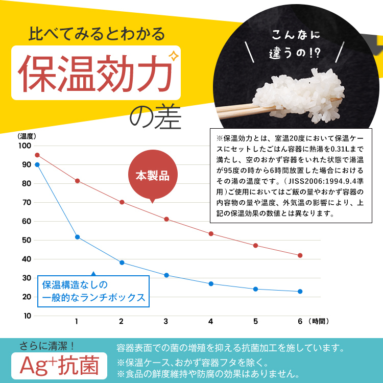 - 保温ケース=ステンレス鋼(アクリル樹脂塗装)、保温ケースフタ・止め具・リング・おかず容器本体・ご飯容器本体=ポリプロピレン、おかず容器フタ=シリコーンゴム