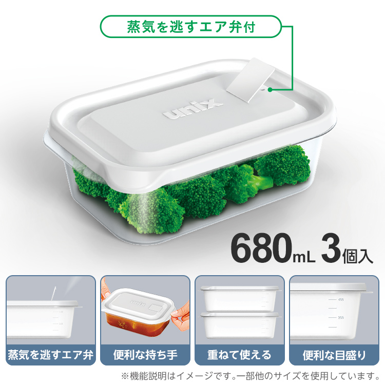 冷凍からレンジまで対応のお徳用保存容器です。使いやすい長角型。