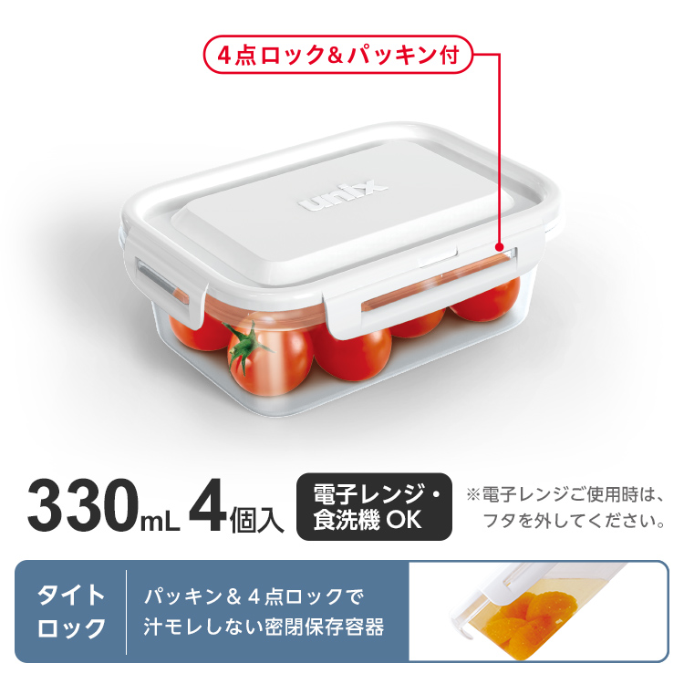 パッキン&ロックで汁漏れを防ぎます。食洗機対応でお手入れも簡単です。