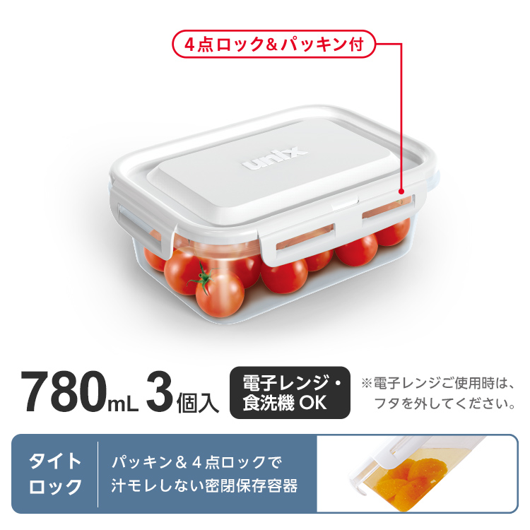 パッキン&ロックで汁漏れを防ぎます。食洗機対応でお手入れも簡単です。