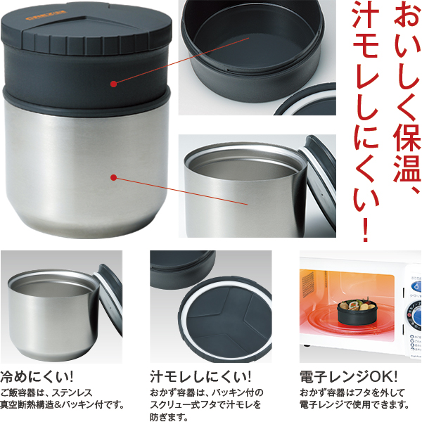 ステンレス真空断熱構造で、あったかごはんが持ち歩けます。