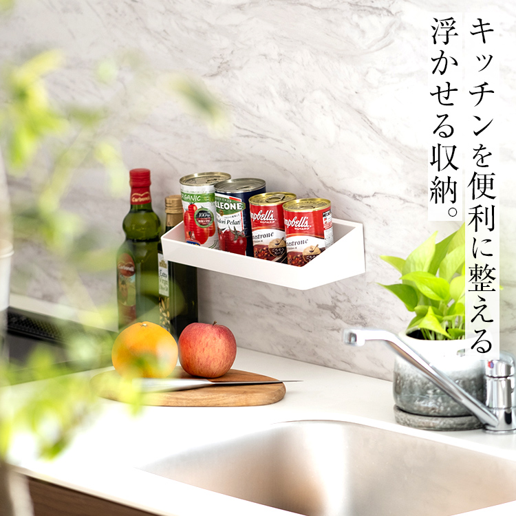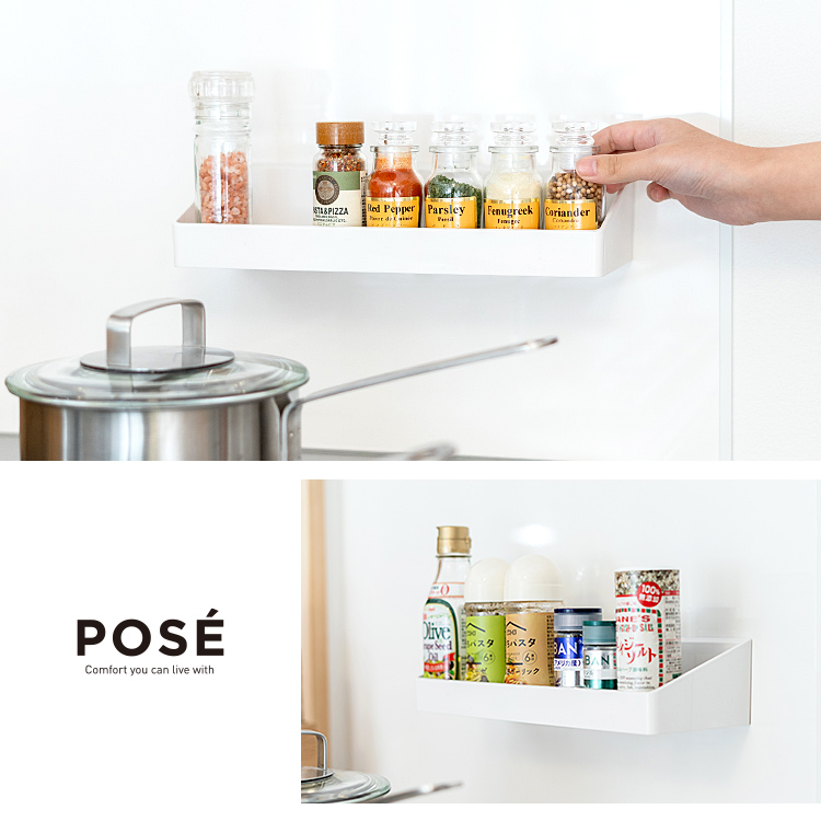 繰り返し貼ってはがせる吸着シートで取り付けられる調味料ラックです。