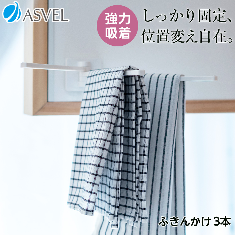 繰り返し貼ってはがせる吸着シートで取り付けられるふきん掛けです。