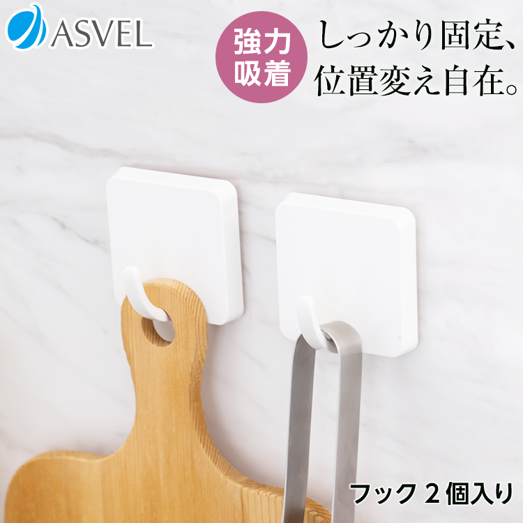 繰り返し貼ってはがせる吸着シートで取り付けられるフック2個セットです。