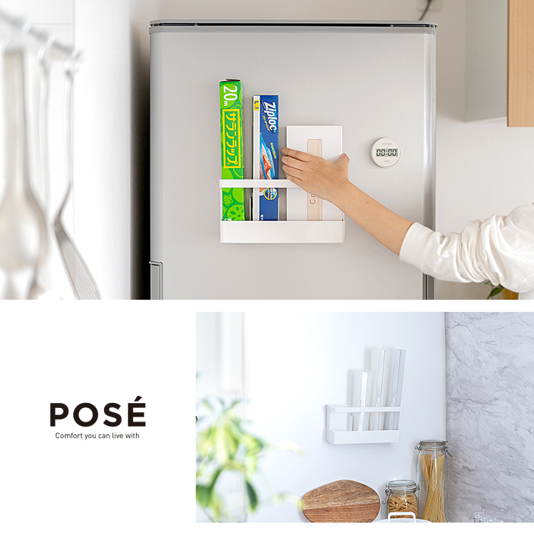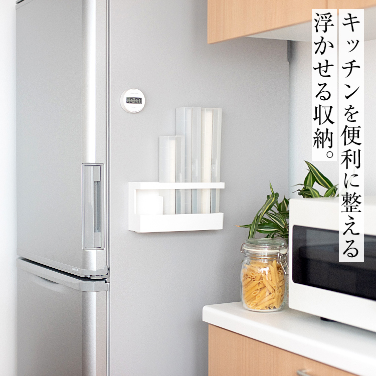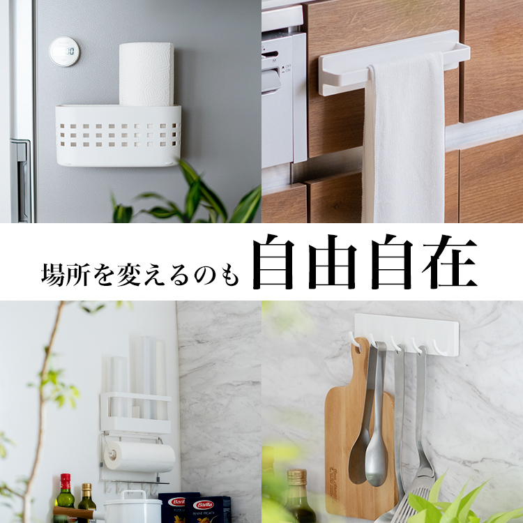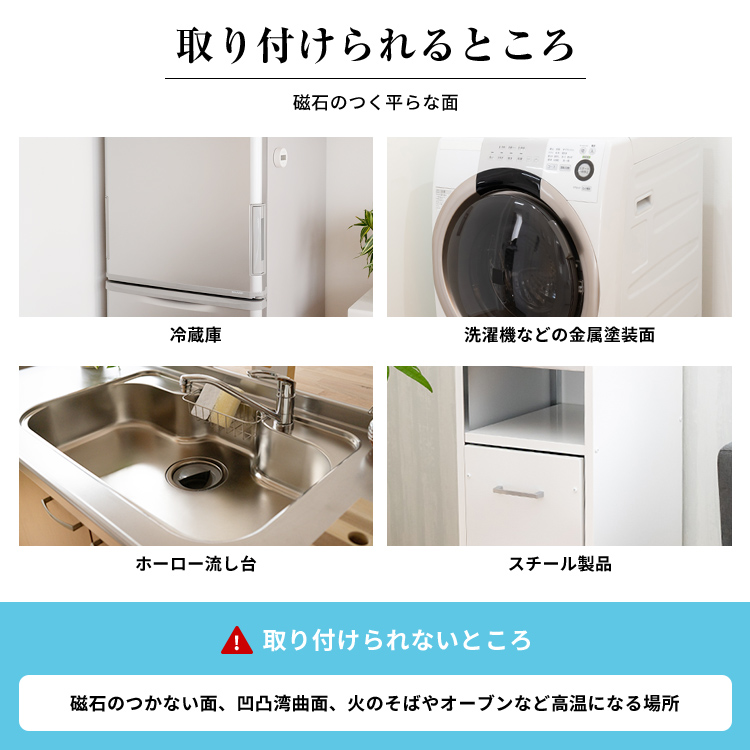 設置、位置変更も簡単なマグネットで取り付けられるキッチン消耗品収納です。