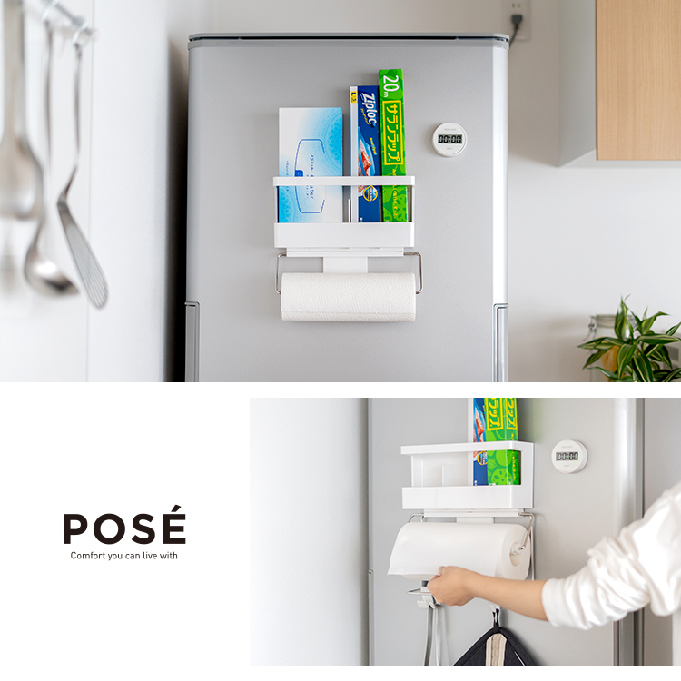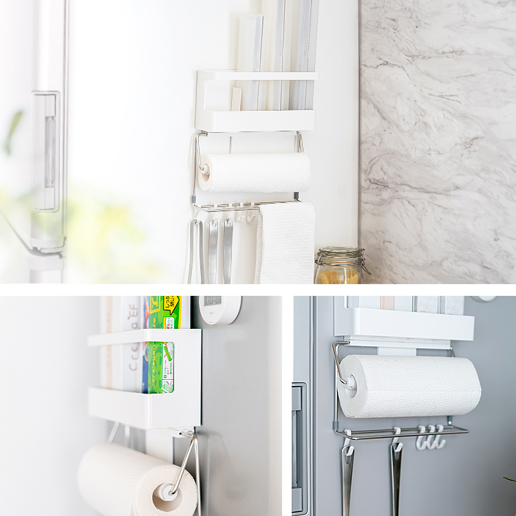 - 本体・仕切り・ペーパースベリ止め部・エンドキャップ・フック=ABS樹脂、クッション=シリコーンゴム、アーム・バネ=ステンレス鋼、マグネット=ラバーマグネット