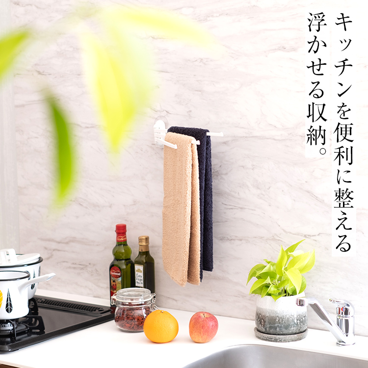 吸盤で取り付けられるシンプルなふきん掛けです。
