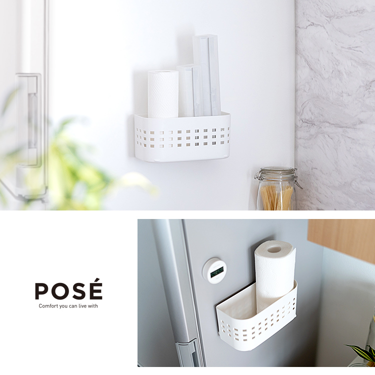 設置、位置変更も簡単なマグネットで取り付けられる便利なバスケット。