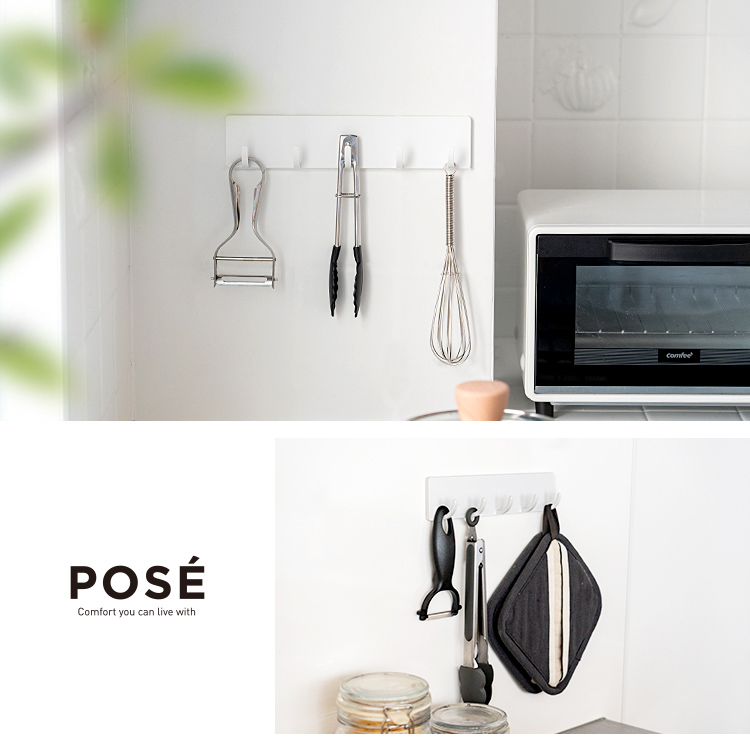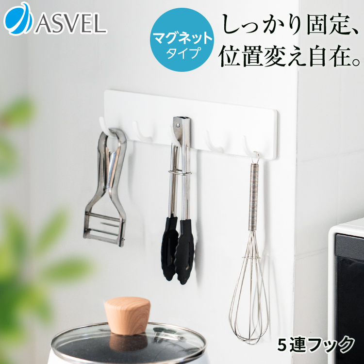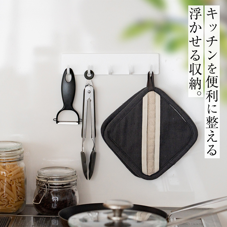 キッチンツールの収納にぴったりな5連フック。マグネットでカンタン取付。