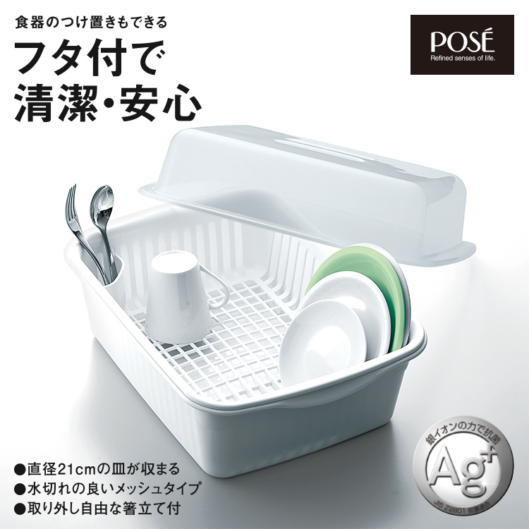 ほこりを防ぐフード付きの大容量水切りラックです。
