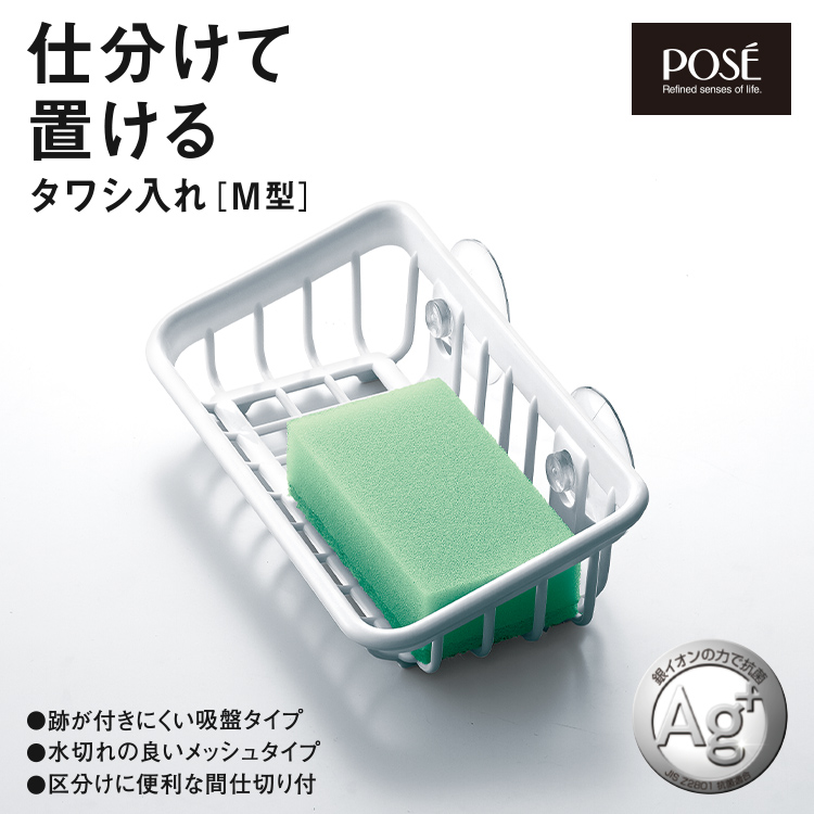 シンプルで使いやすい洗剤たわし入れです。吸盤付き。