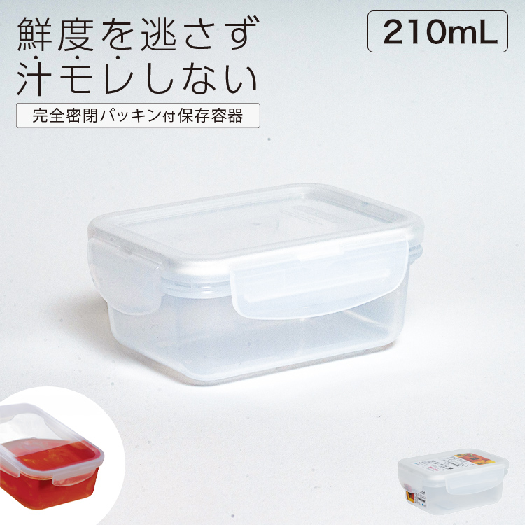 4点ロックとパッキン付きで完全密閉できる保存容器です。