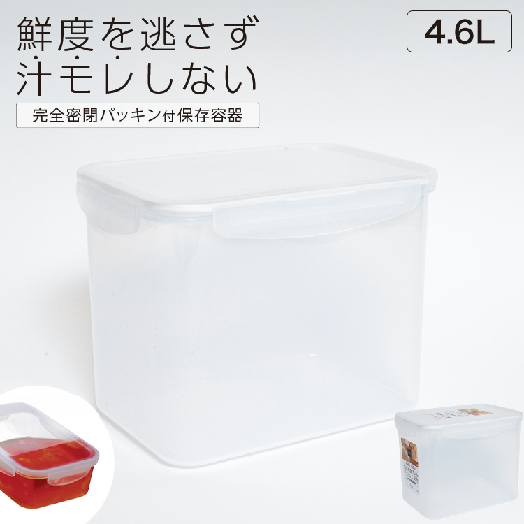4点ロックとパッキン付きで完全密閉できる保存容器です。