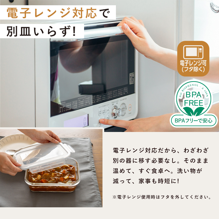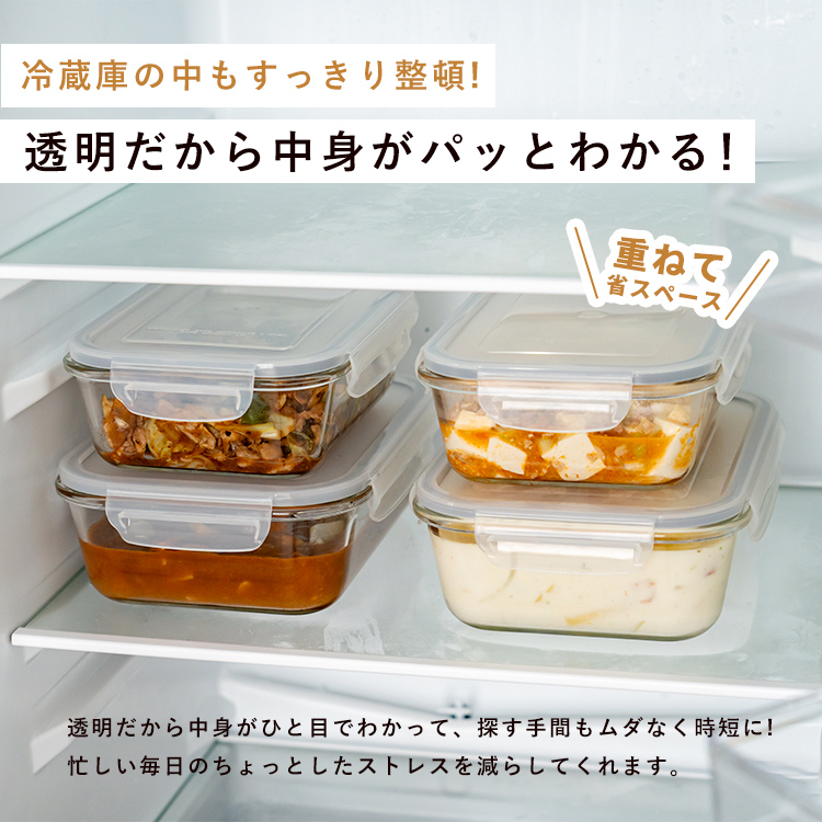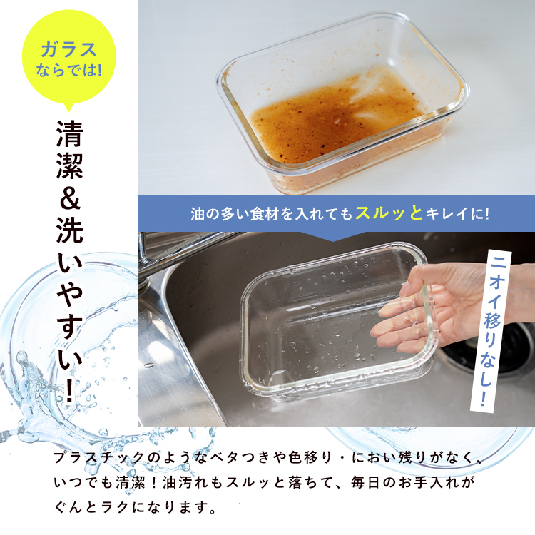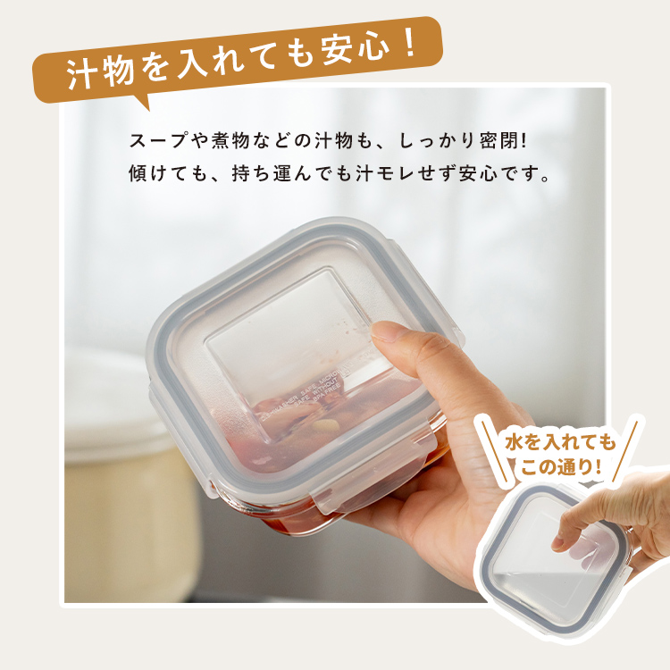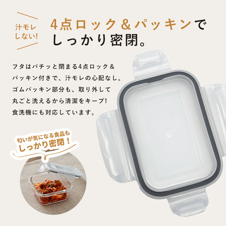作り置きにぴったりのサイズです。汁漏れを防ぐパッキン&ロック付き。食洗機対応でお手入れもカンタン!