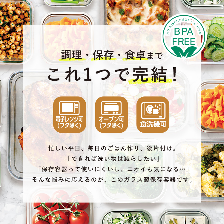 耐熱ガラス容器で保存から調理まで幅広く使えるアイテムです。