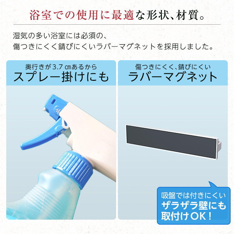 大人気のお風呂の浮かせる収納シリーズ!コンパクトなSサイズはキッチンなどでも使いやすいサイズです。マグネットだから磁石が着く場所なら自由自在に取り付け、取り外しも簡単。