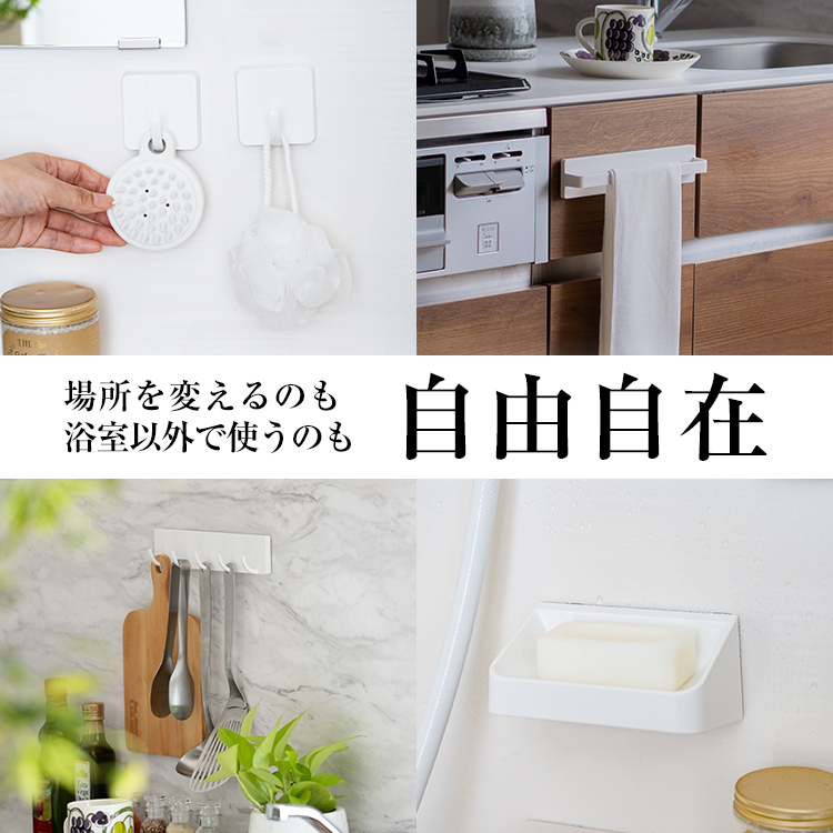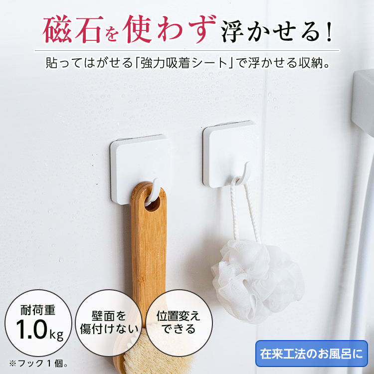 お風呂はもちろん洗面所などでも活躍する浮かせる収納です。