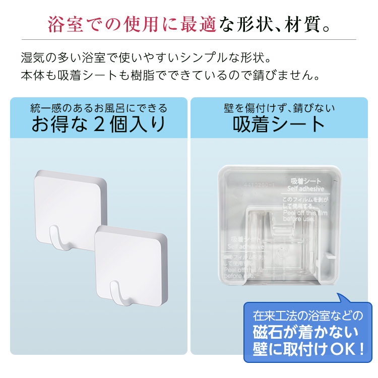何度でも取付取り外しできる吸着タイプのシート取付のフック2個セットです。