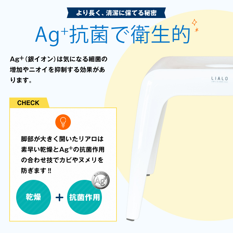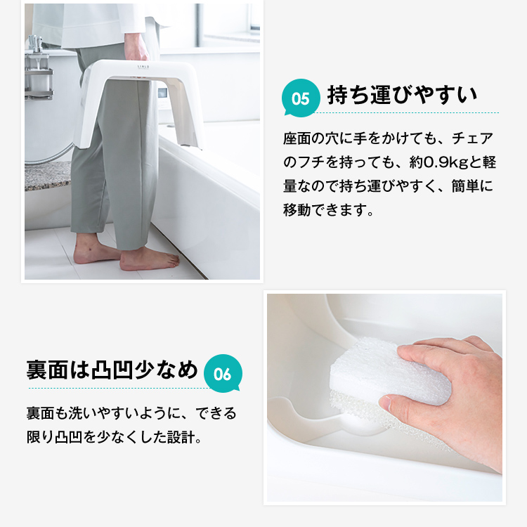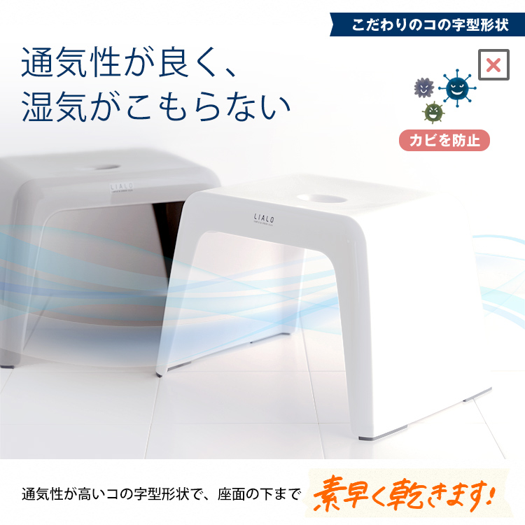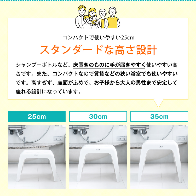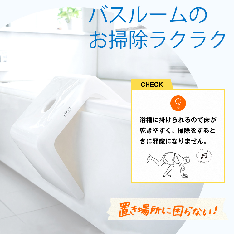 スタイリッシュで通気性の良いこの字形状!浴槽にかけられるのでお掃除の邪魔になりません。お子様でも座りやすい少し低めの25cmサイズです。