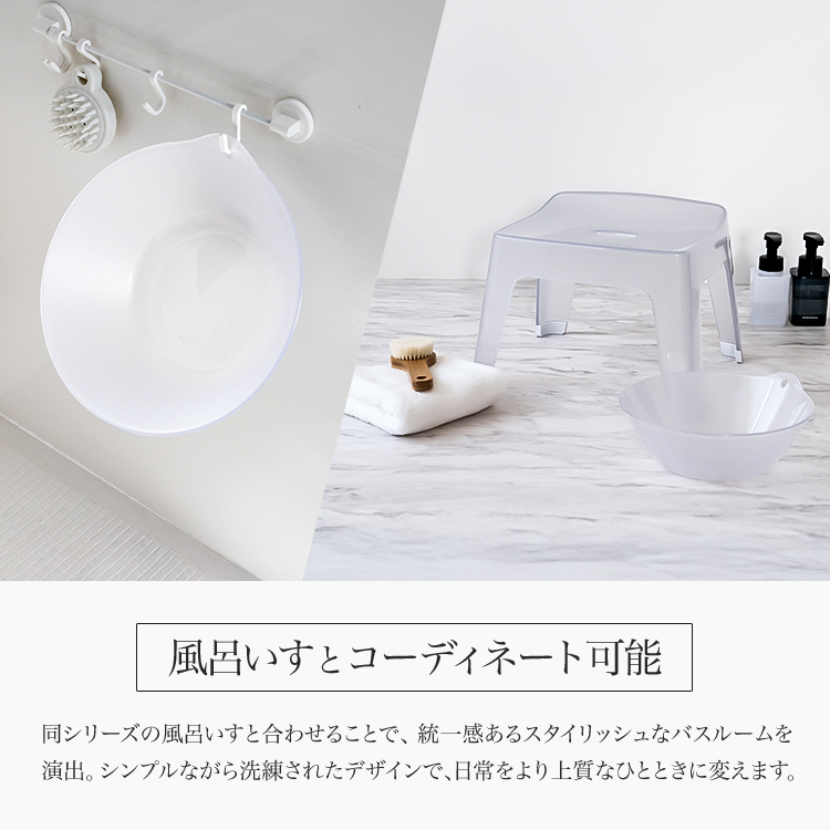 風呂椅子とあわせてコーディネートできるフック穴付き湯桶です。