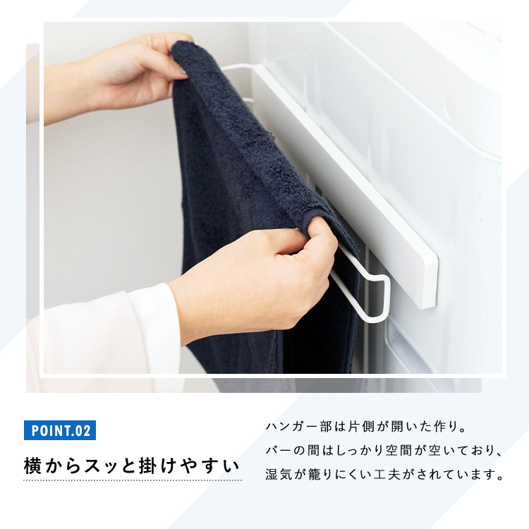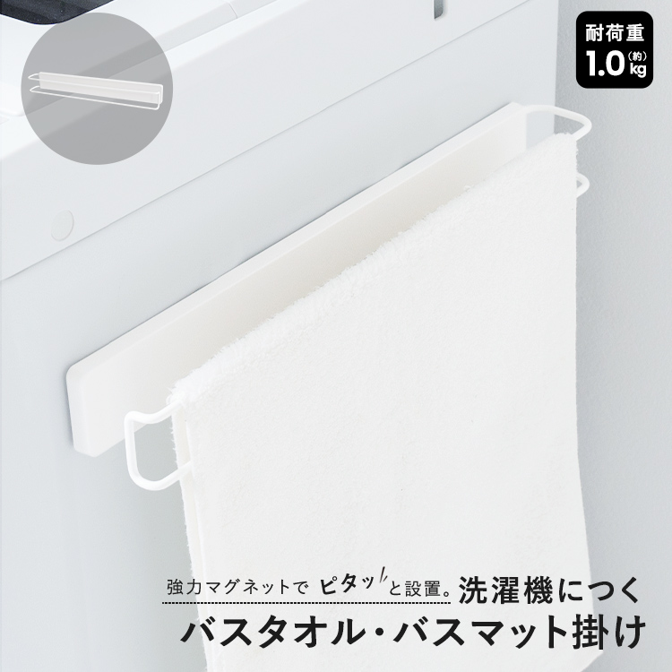 洗濯機廻りを有効活用。干し場所に困るバスマット、タオルを掛けれる収納バーです。