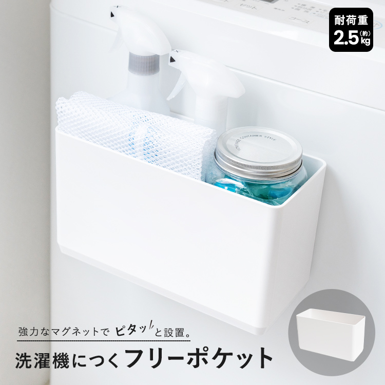 洗濯機廻りを有効活用。洗濯機にマグネットで取り付けるタイプの収納ラックです。
