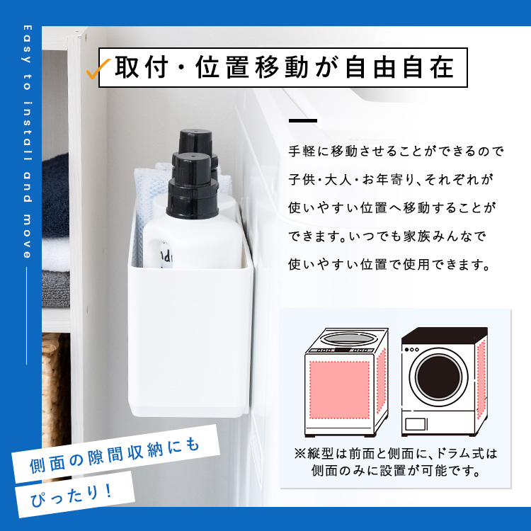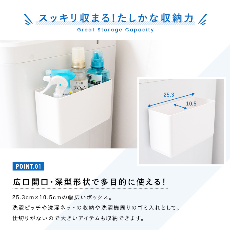 しっかり入る大容量タイプで散らかりがちな洗面所周りの収納に最適!すべり止め付きで脱水の振動もへっちゃらです。