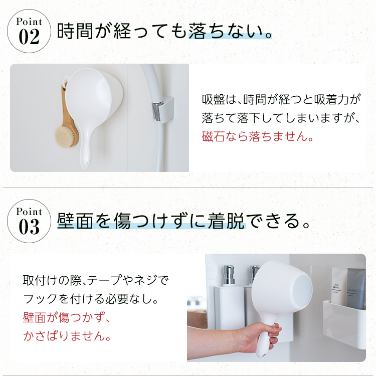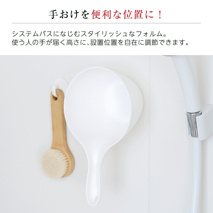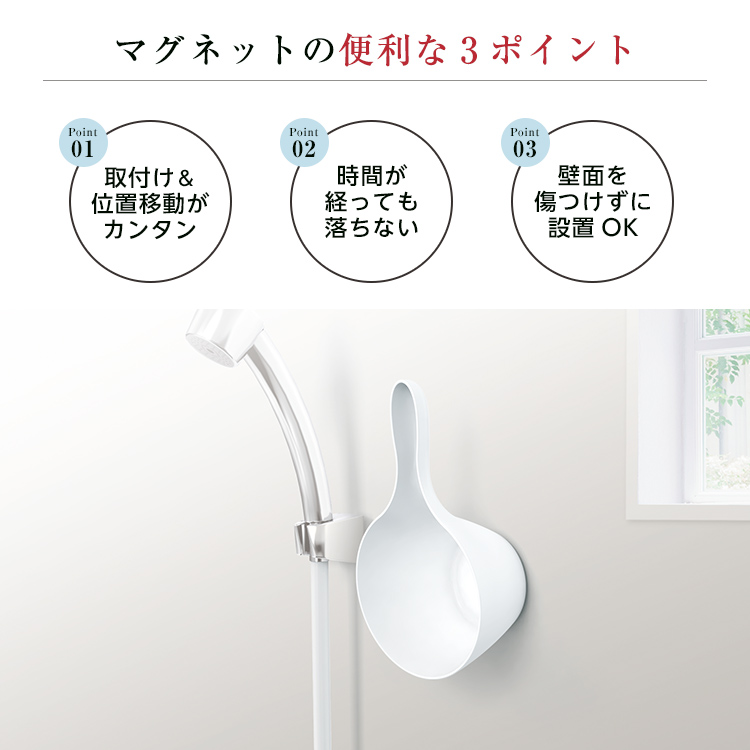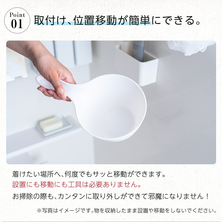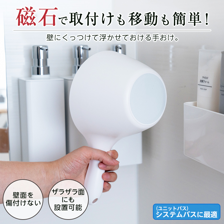 マグネットだから、使いたい場所に手おけを取付け。取り外しも簡単です。