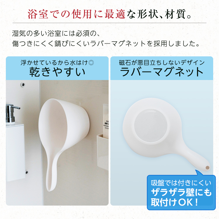 磁石の力でお風呂の壁につけられる手おけです