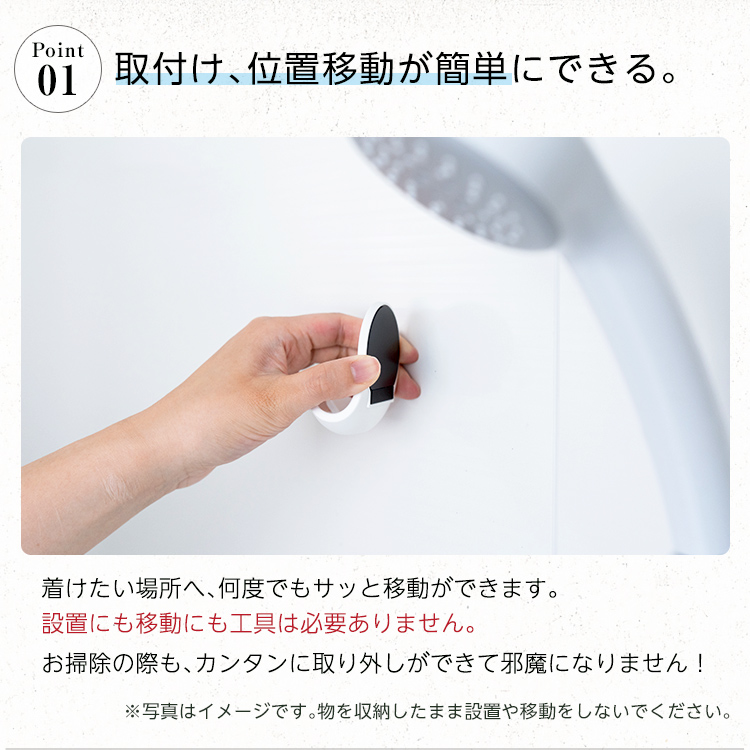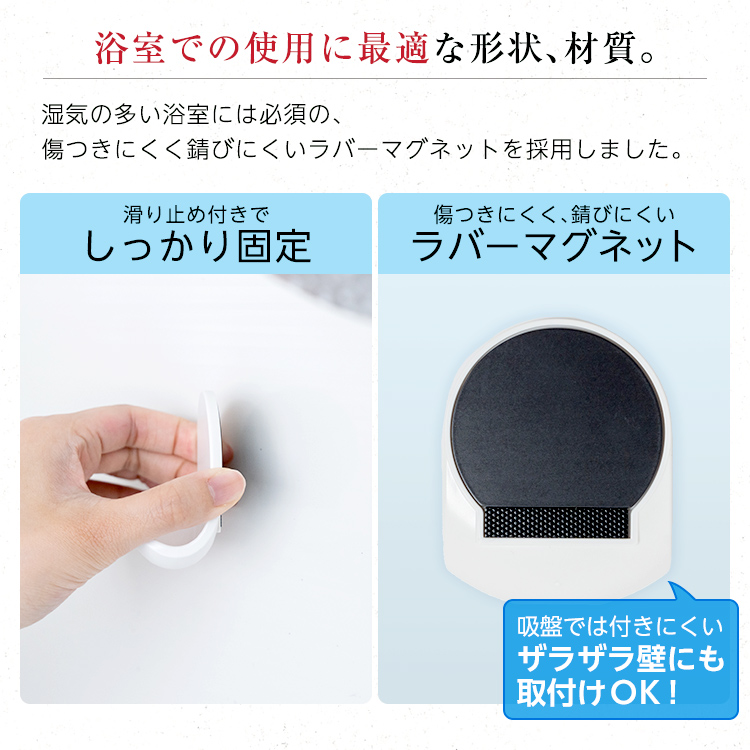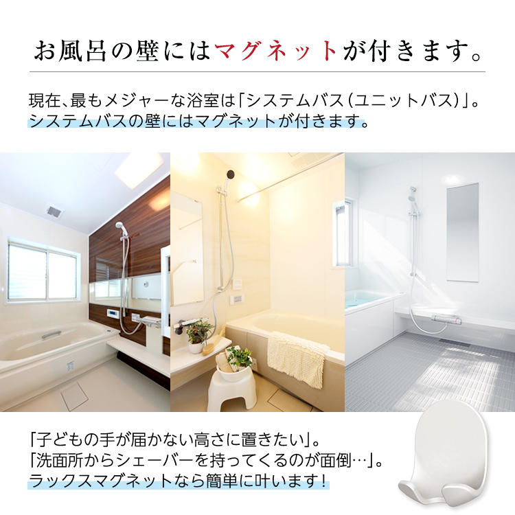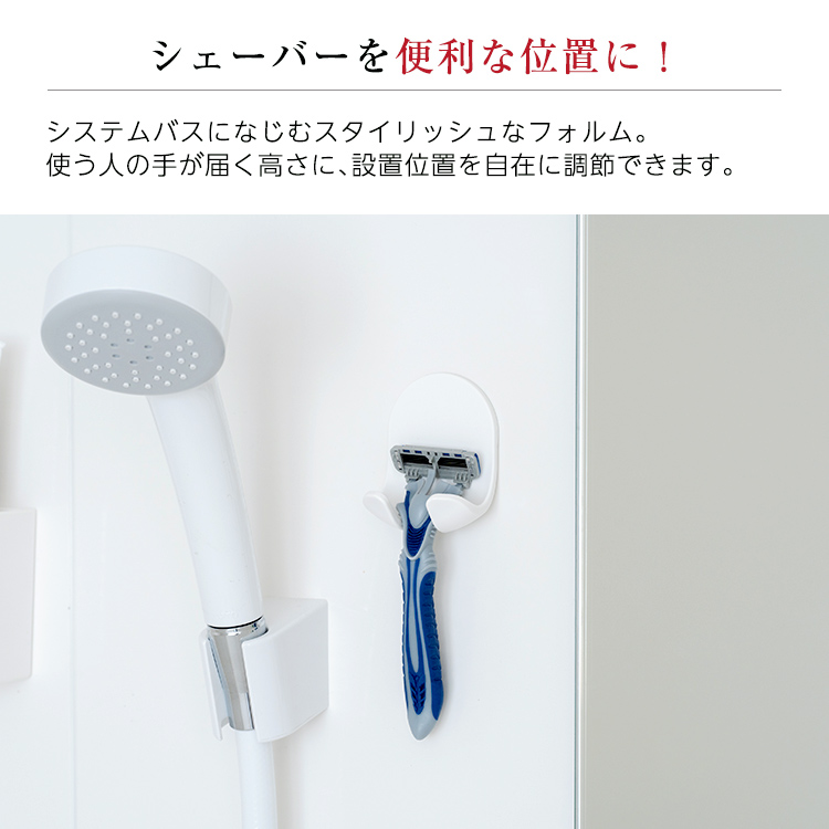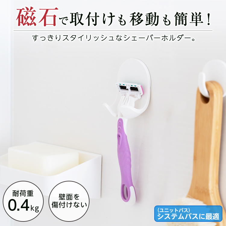 磁石の力でお風呂の壁につけられるシェバー用収納フックです。