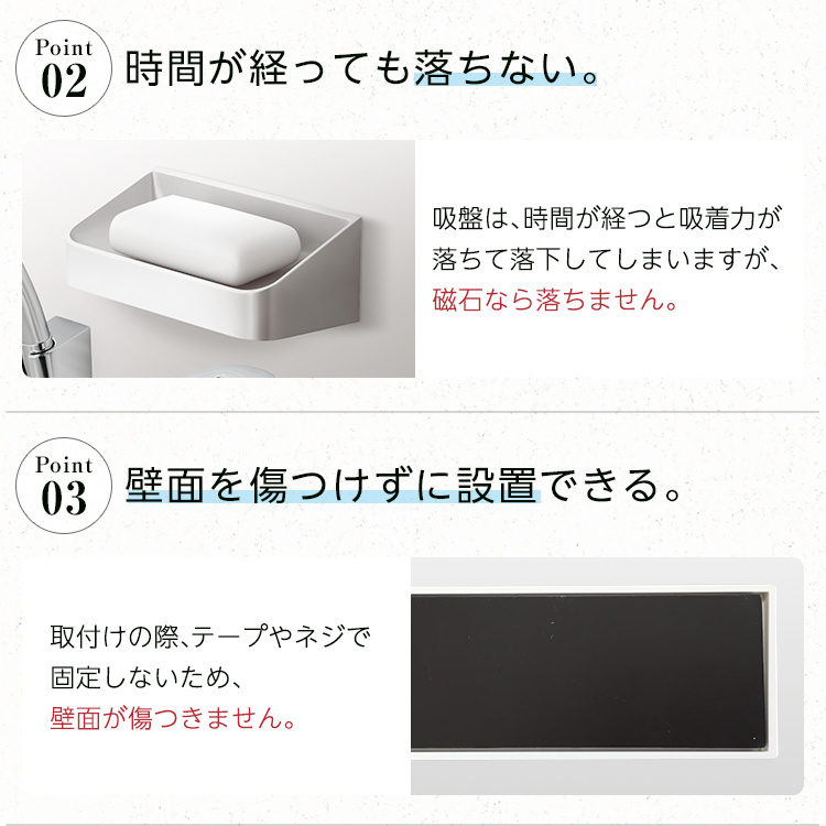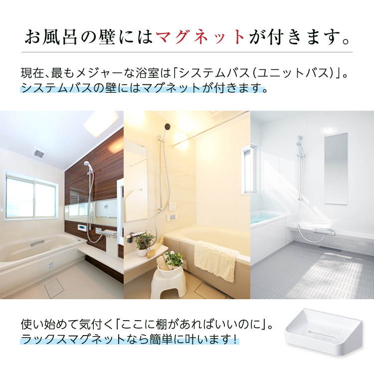磁石の力でお風呂の壁につけられる石けん用ラックです。