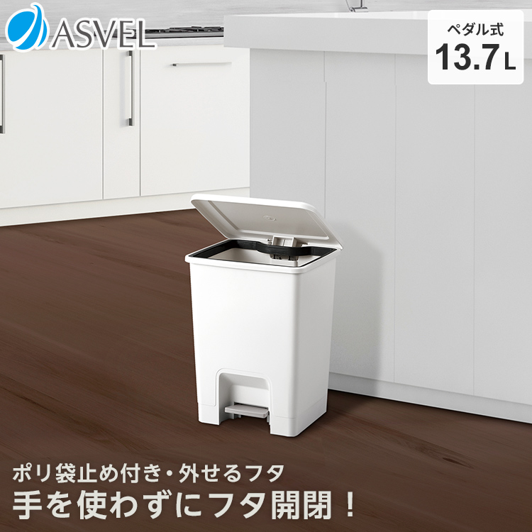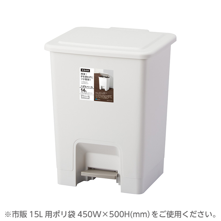 手を使わずに簡単開閉できるペダル式ゴミ箱14L。