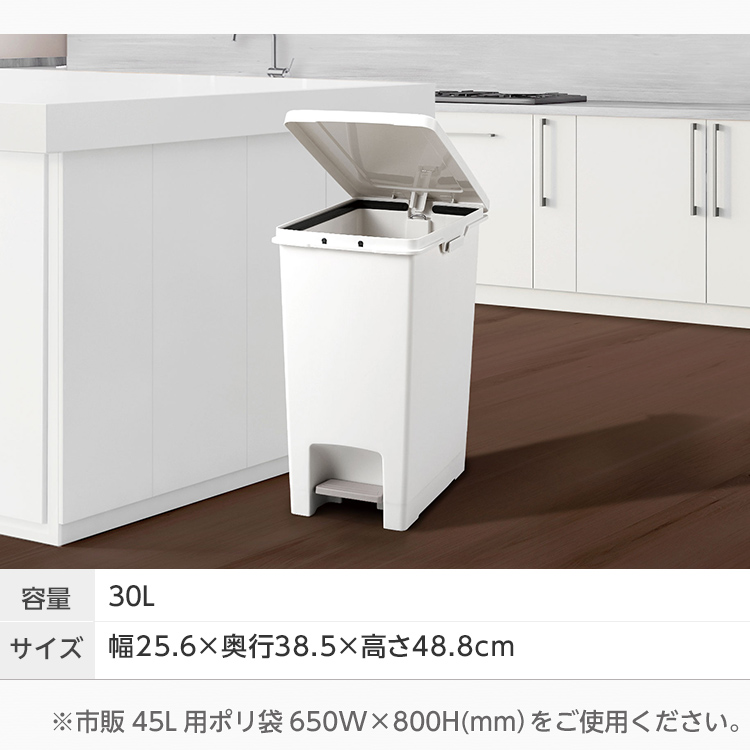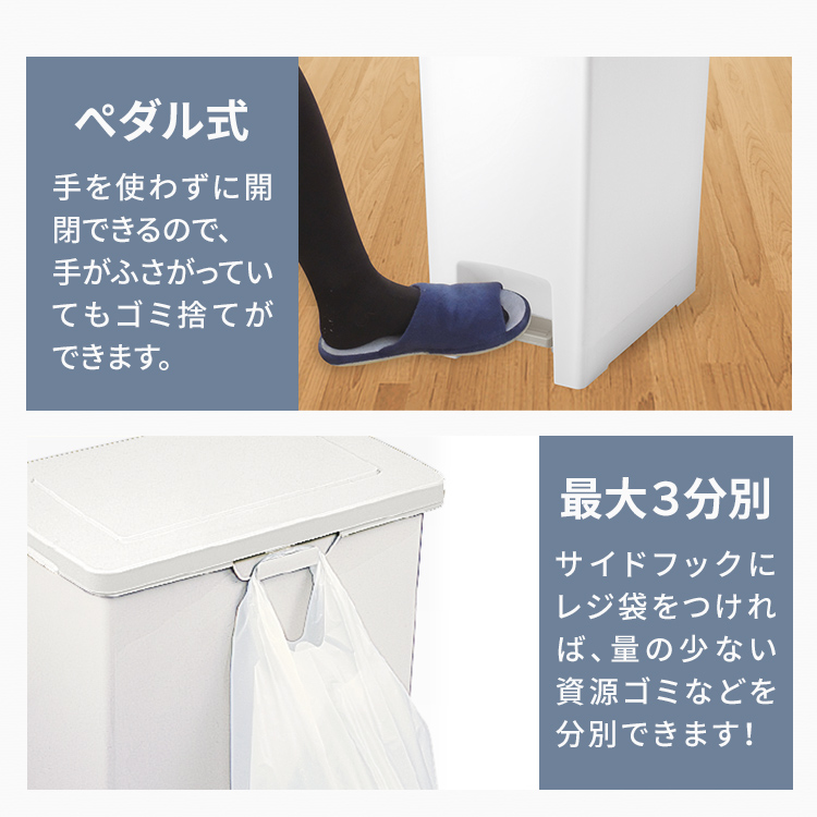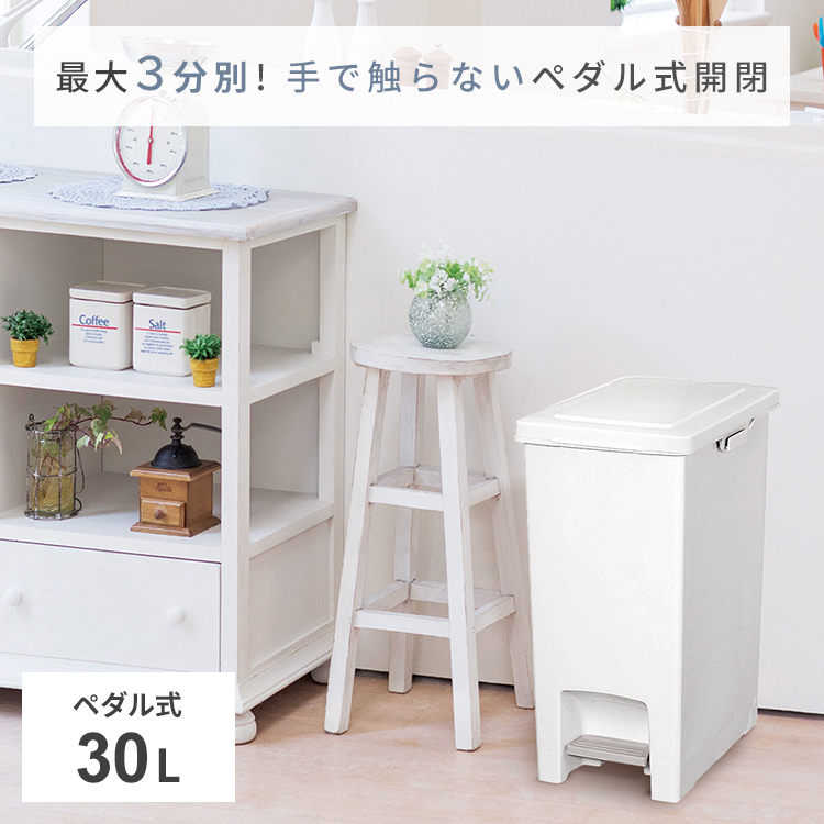 手を使わずに簡単開閉できるペダル式ゴミ箱30L。