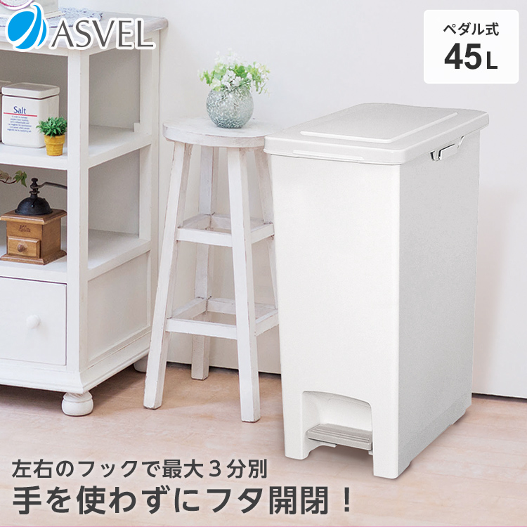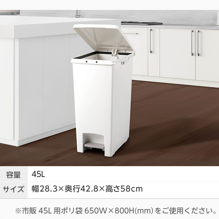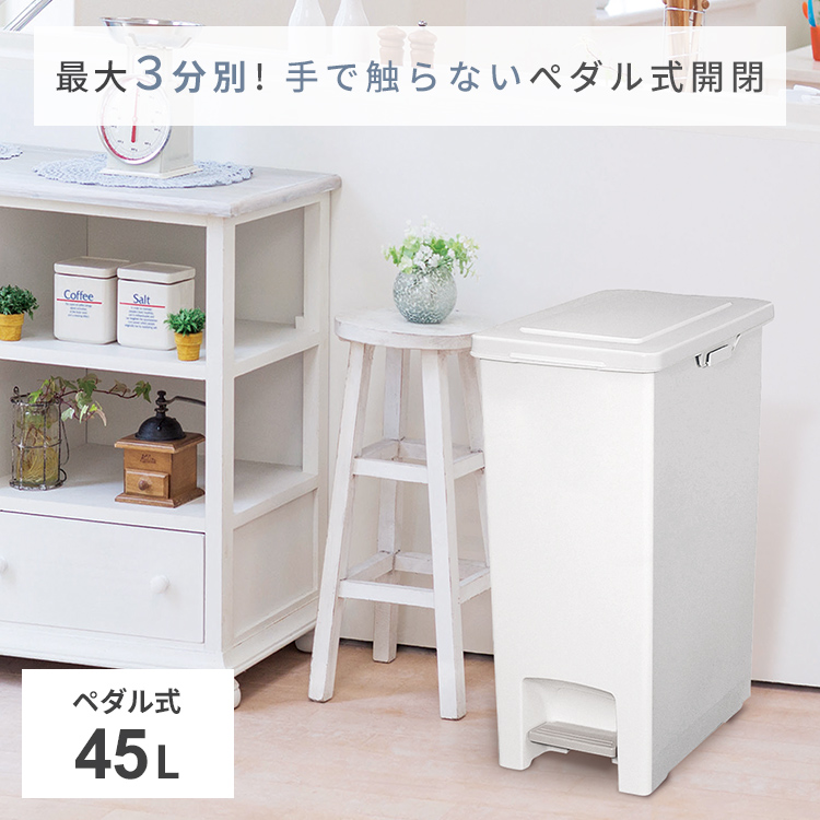 手を使わずに簡単開閉できるペダル式ゴミ箱45L。
