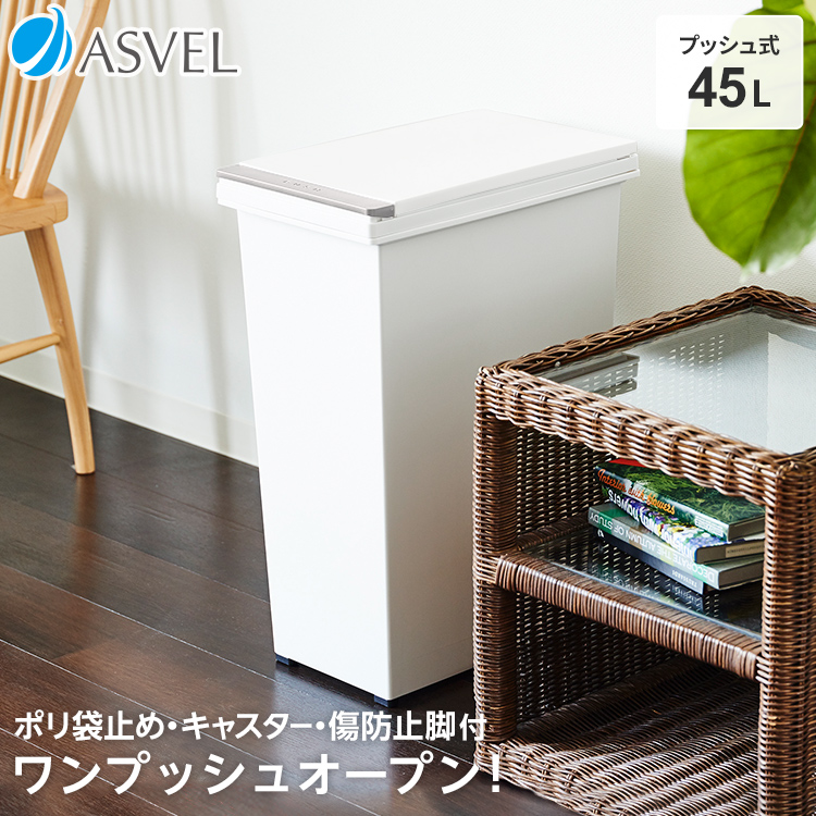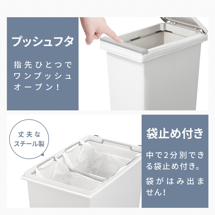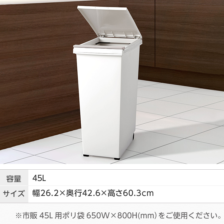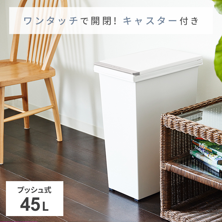 指1本で開けられるワンプッシュタイプゴミ箱45L。