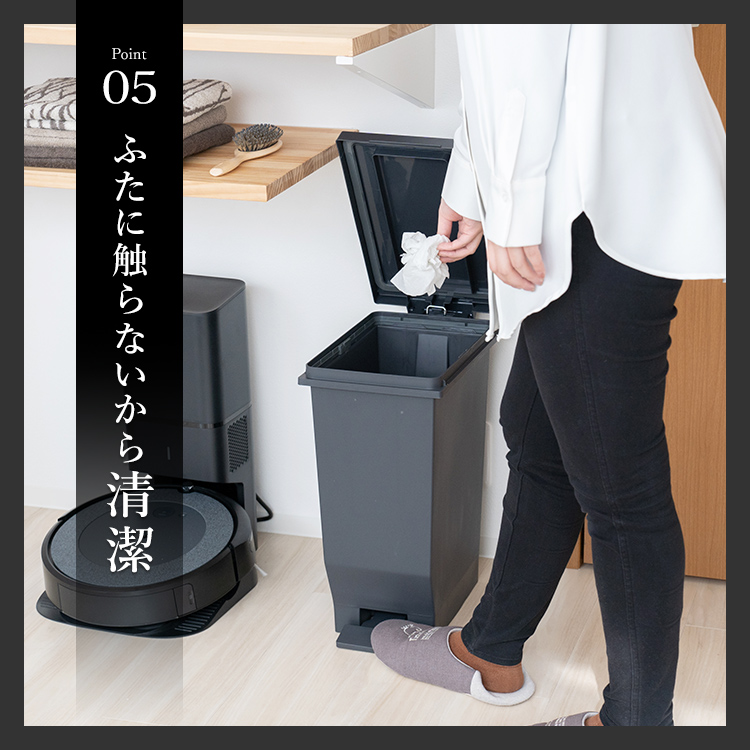 - フタ・本体・袋止め・ペダル=ポリプロピレン、ペダルロット=スチール、パッキン=ポリエチレン