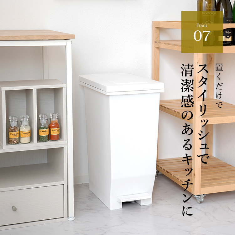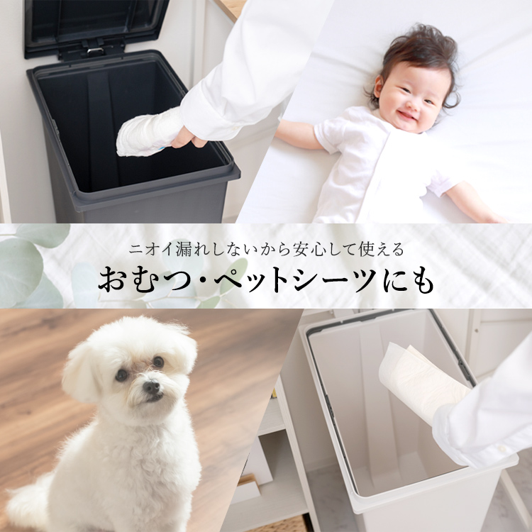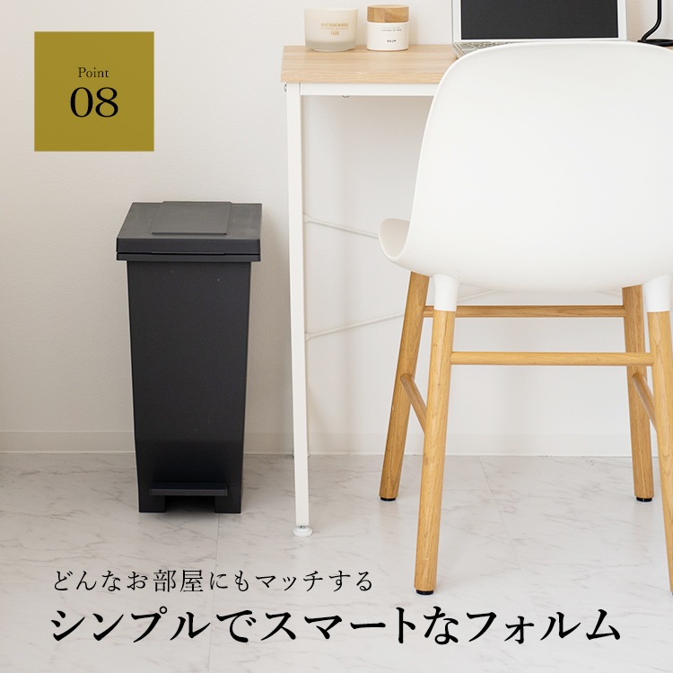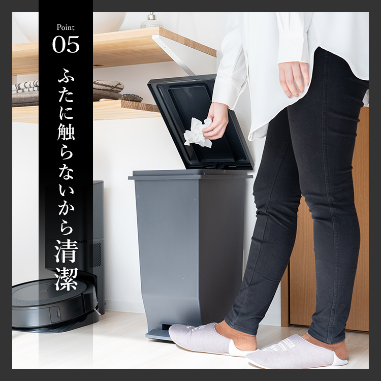 - 本体・フタ・袋止め・ペダル=ポリプロピレン、パッキン=ポリエチレン、ペダルロッド=スチール(クロームメッキ)