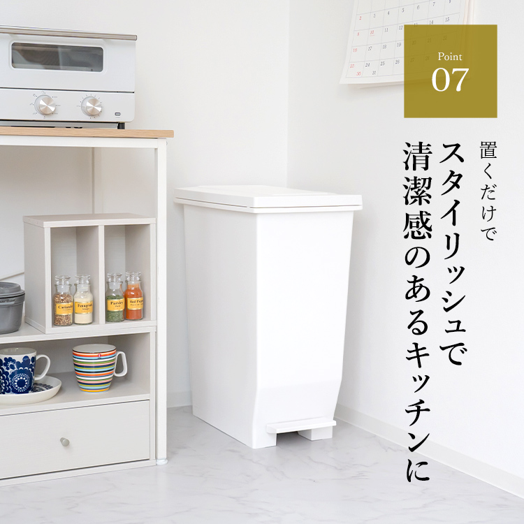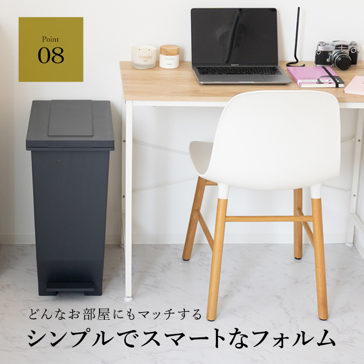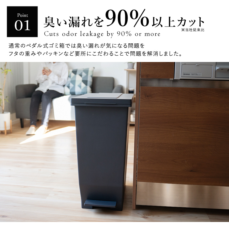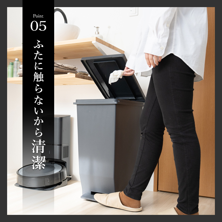 - 本体・フタ・袋止め・ペダル=ポリプロピレン、パッキン=ポリエチレン、ペダルロッド=スチール(クロームメッキ)