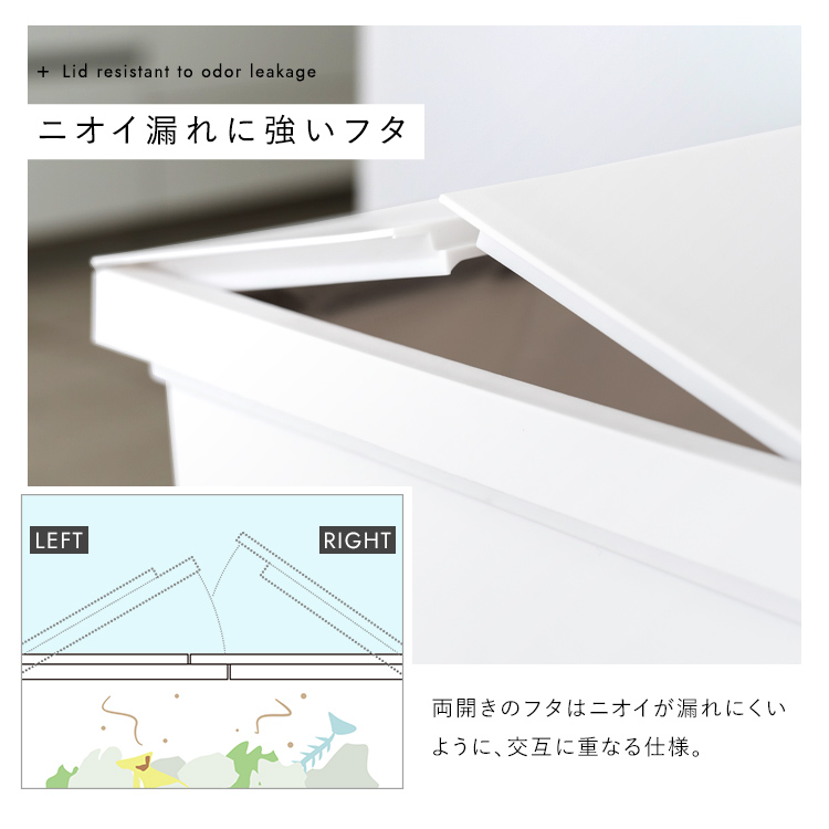 - 本体・フタ・ポリ袋止め・ペダル・ロッド・キャスター=PP