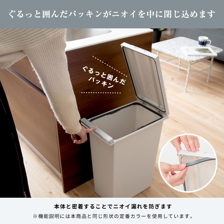 - フタ・本体・袋止め=ポリプロピレン、プッシュレバー=ポリスチレン、バネユニット=ポリアセタール、バネ=ステンレス鋼、パッキン=シリコーンゴム